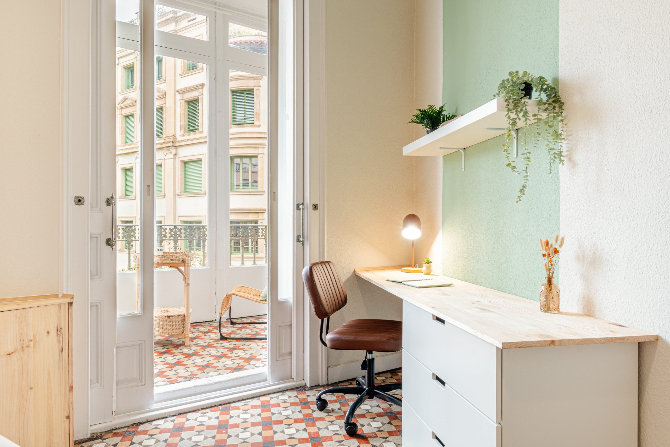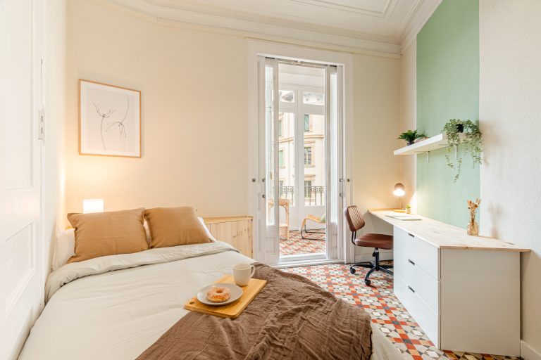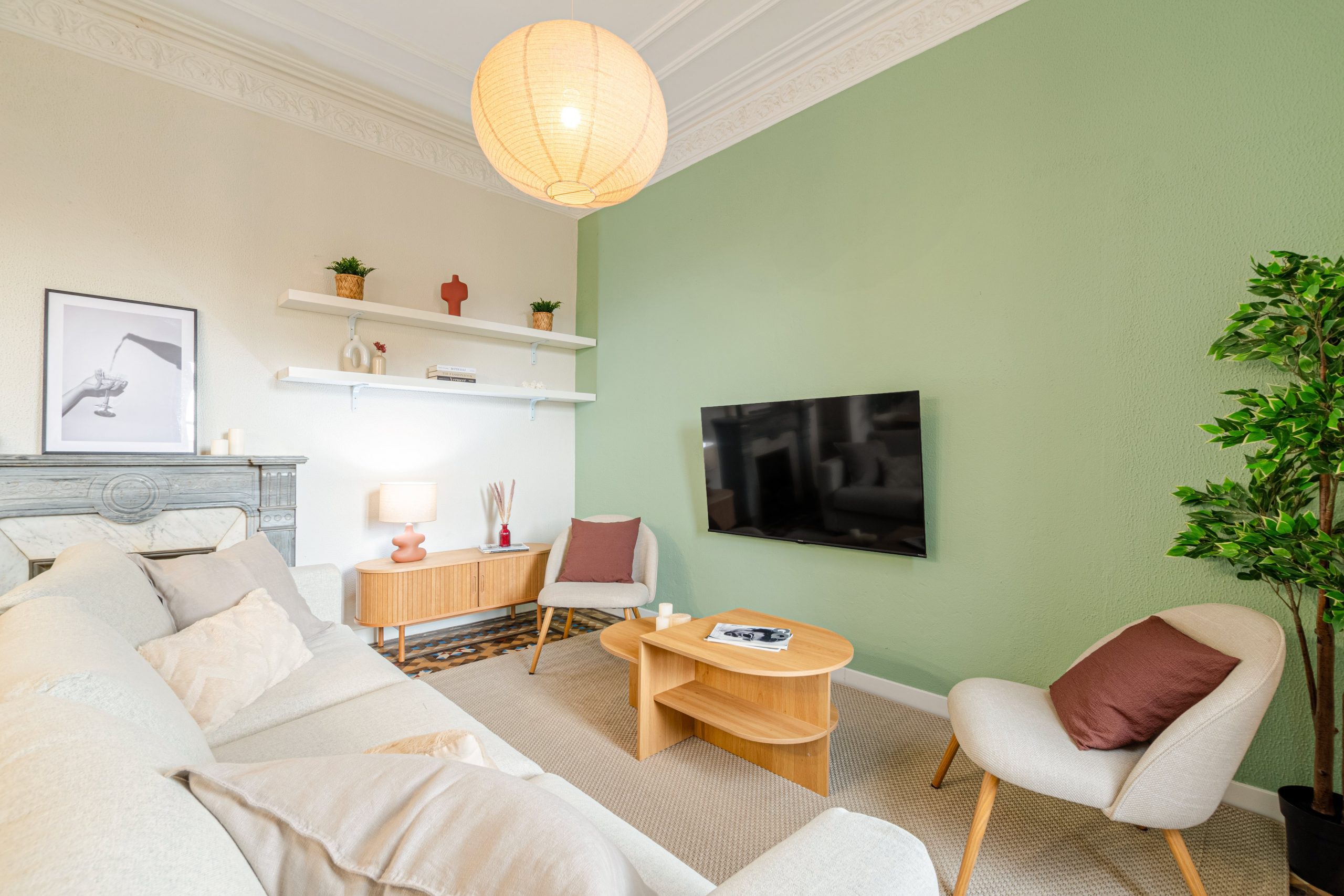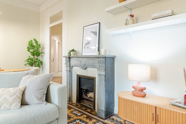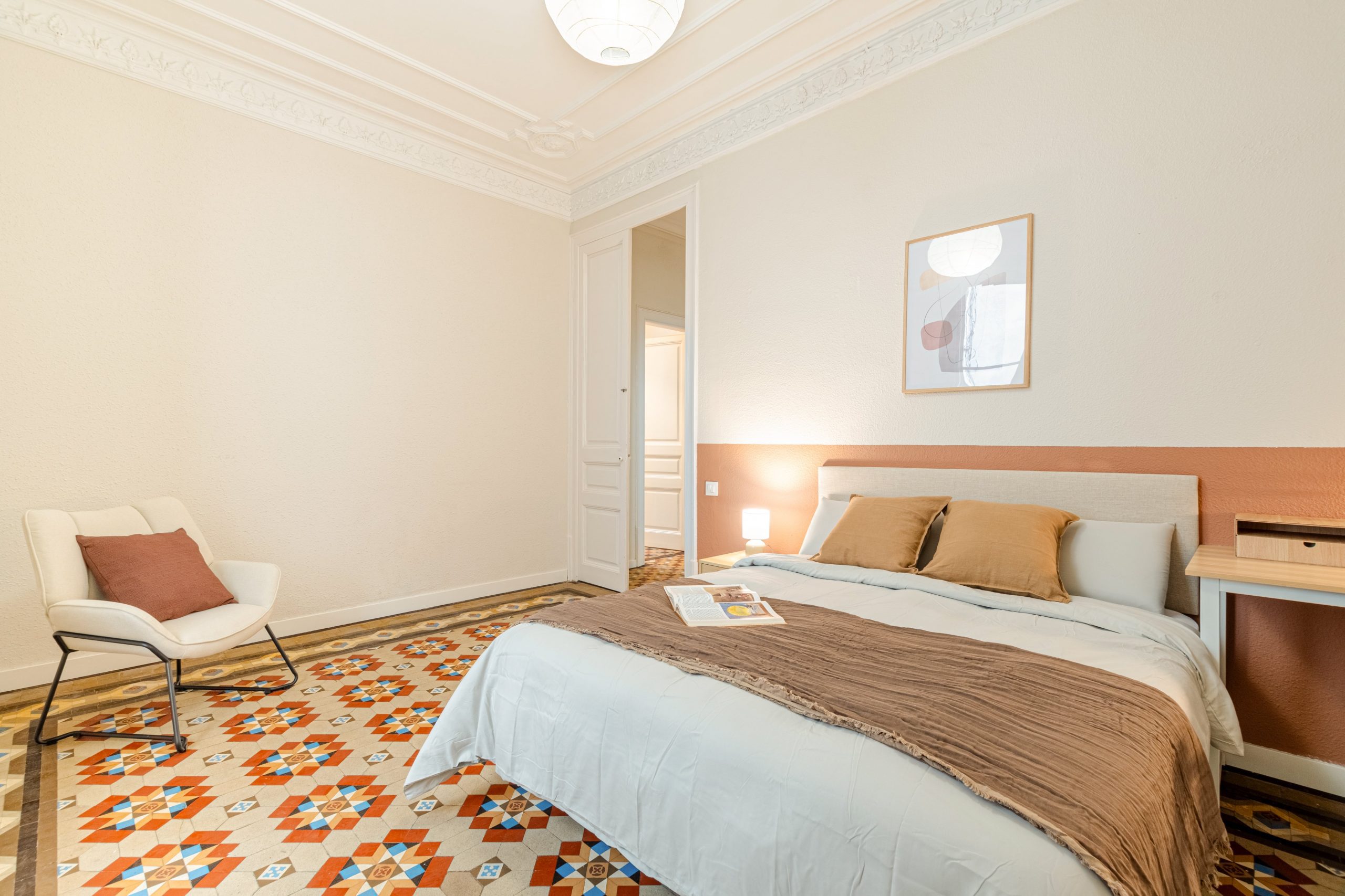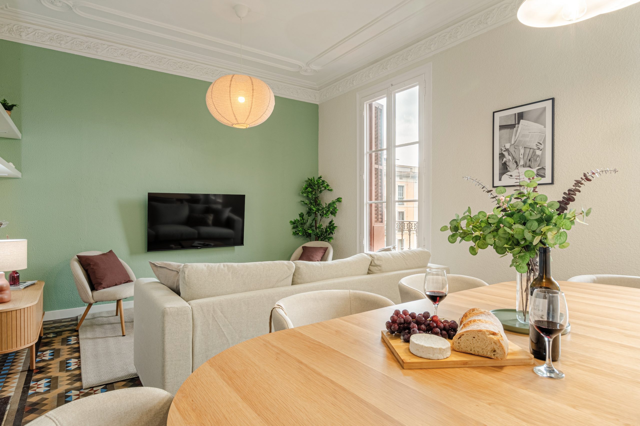 Un espacio que fusiona el encanto del estilo modernista barcelonés, con sus icónicos suelos hidráulicos y elegantes molduras, con una estética contemporánea y toques de color que aportan frescura y vitalidad. El resultado: un piso con carácter, funcionalidad y un ambiente joven, listo para ser compartido.